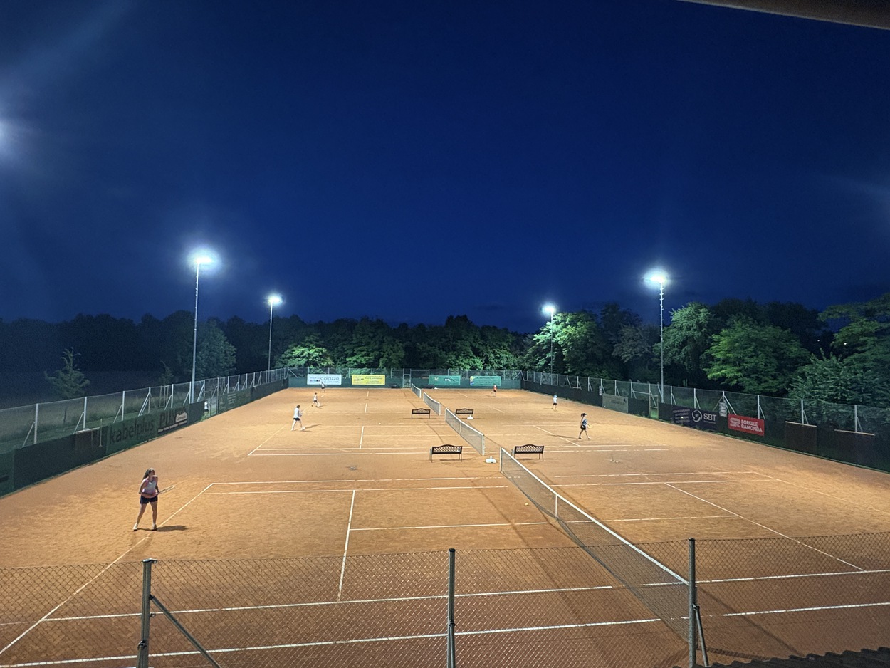 Am 28. Juli fand auf unserer Anlage das 2. Mal unser Flutlichtturnier statt. Zahlreiche Spielerinnen und Spieler lieferten sich bis in die späten Abendstunden spannende Matches unter dem Scheinwerferlicht. Die besondere Atmosphäre und das faire Miteinander sorgten für beste Stimmung auf und neben dem Platz. Auch für das leibliche Wohl war bestens gesorgt, was das Event zu einem rundum gelungenen Sommerabend machte. Wir bedanken uns bei Fabian und Annika für die tolle Organisation, Tina und Claudia für die kulinarischen Highlights und allen Teilnehmenden und Helferinnen und Helfern – wir freuen uns schon auf das nächste Jahr!